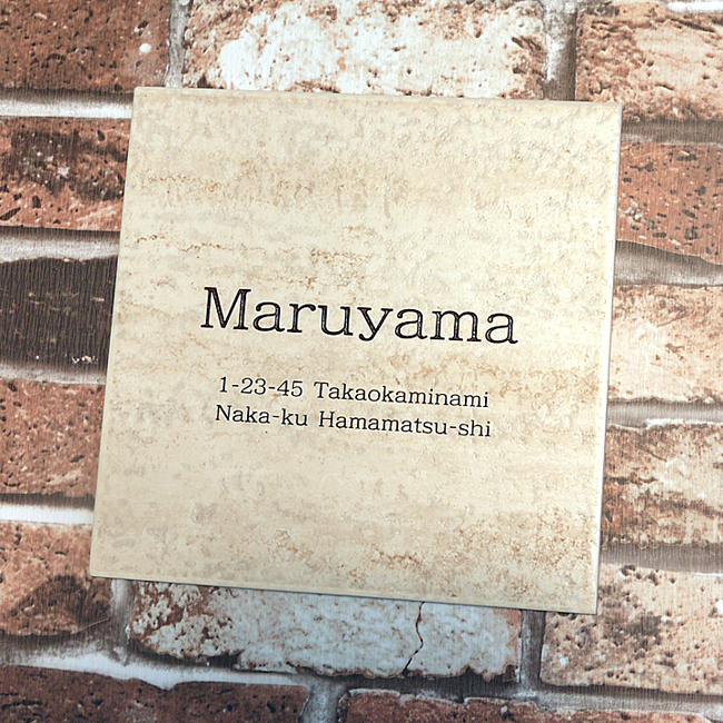 ローマ字表記が似合うレトロ・ベージュのタイル表札200角表札工房 クランジュ。