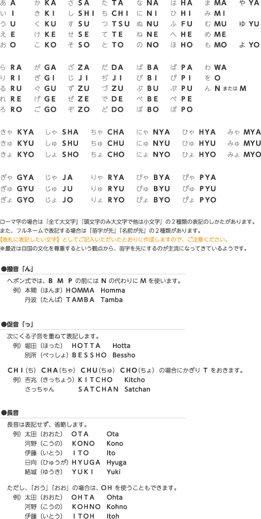 楽天市場 各種ご説明・表札Q&A集 > ヘボン式ローマ字表記:表札ショップ 陶板アート。