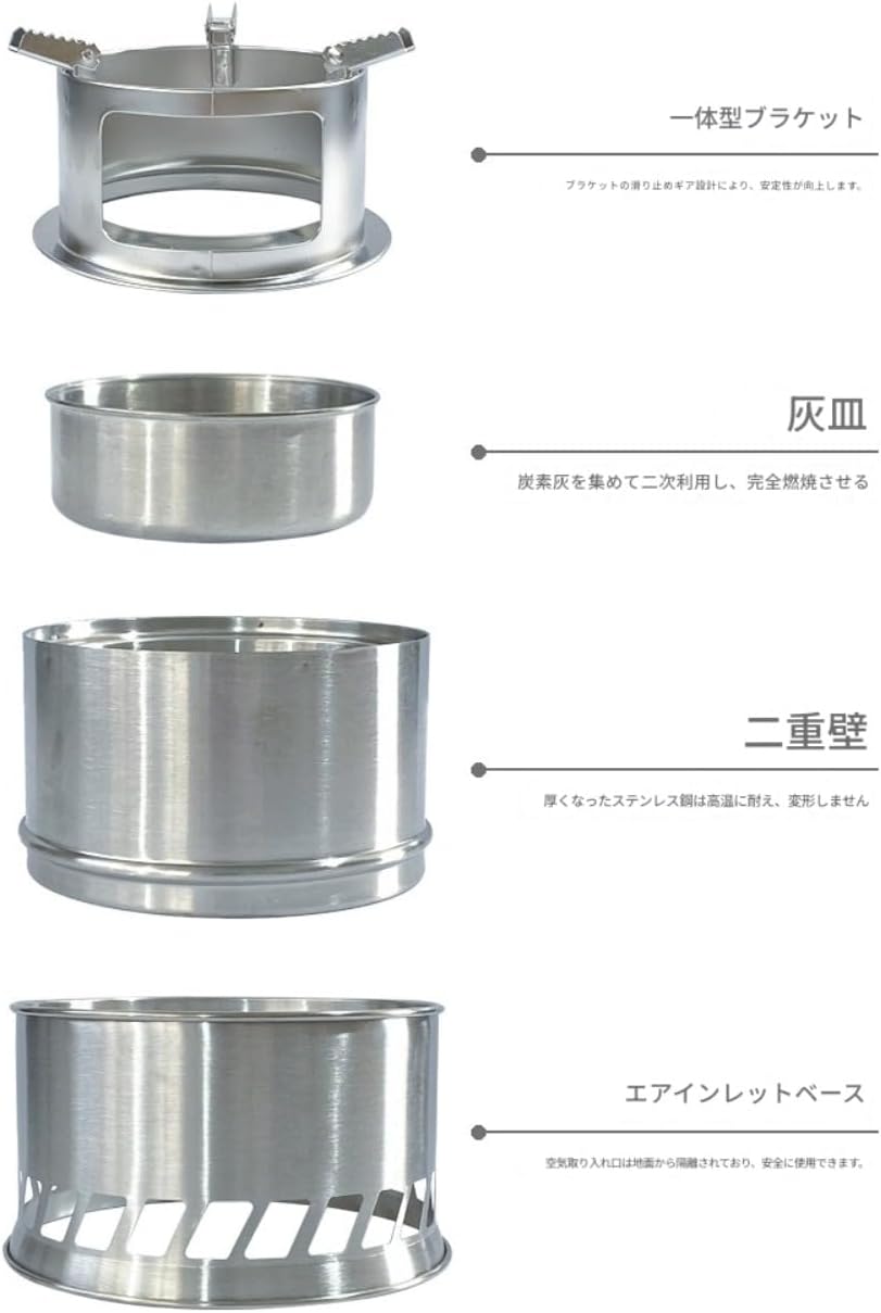 GIEOKDWO クッカー アルコールストーブスタンド 屋外折りたたみ式薪ストーブ ステンレススチール ポータブル キャンプストーブ ウッドストーブ超軽量チタン製 焚き火台 折りたたみ式 薪ストーブ ソロキャンプ 収納袋、アルコールストーブ付 バーベキューコンロ : aim。