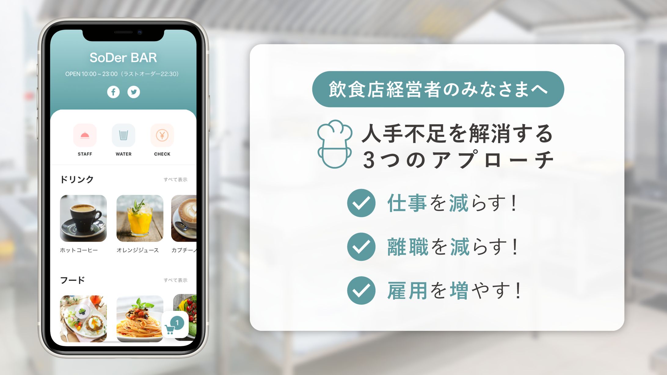 飲食店向けモバイルオーダーアプリ「Soder」UI・ビジュアルデザイン。