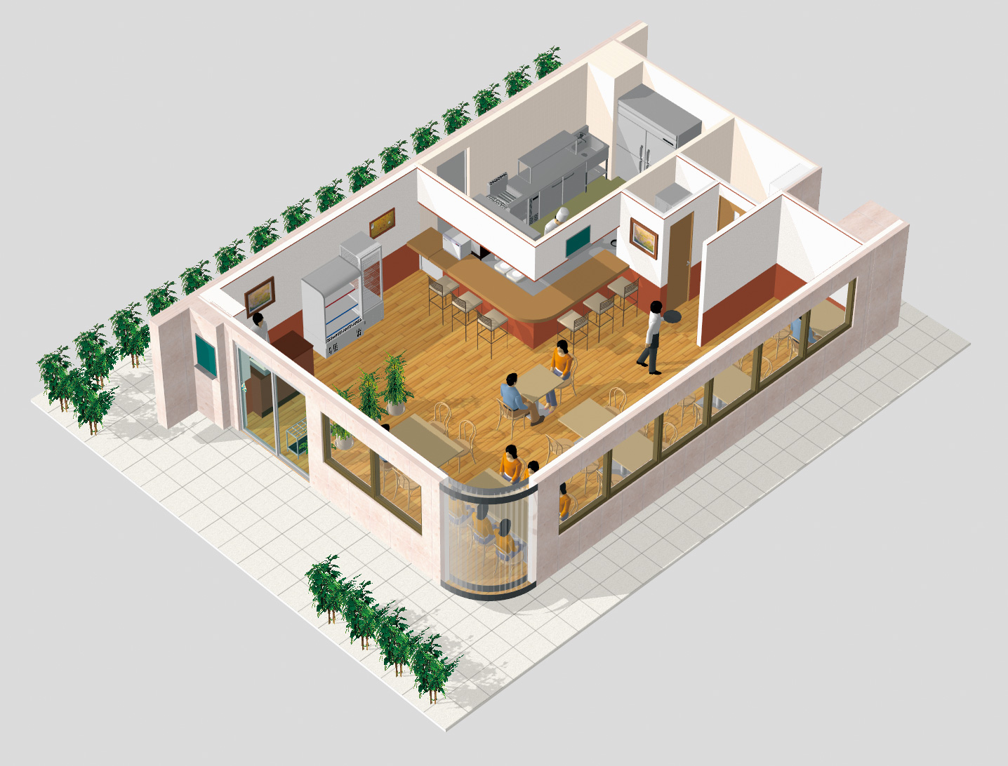 簡単操作で店舗を実現!3Dだから分かりやすい-店舗デザイン・レイアウトソフト「3D飲食店プランナー」。