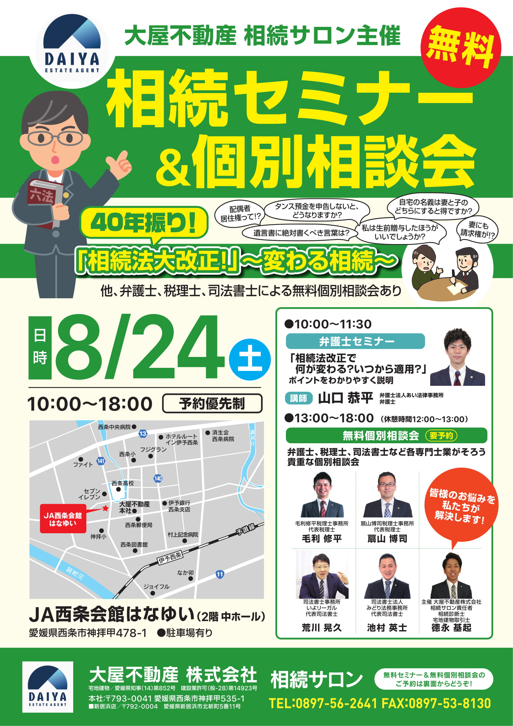 ☆10月の相続無料相談会のお知らせです☆大屋不動産株式会社 - ダイヤホーム愛媛県西条市・新居浜市・松山市の新築・注文住宅・リフォーム・不動産 ・賃貸・分譲地。