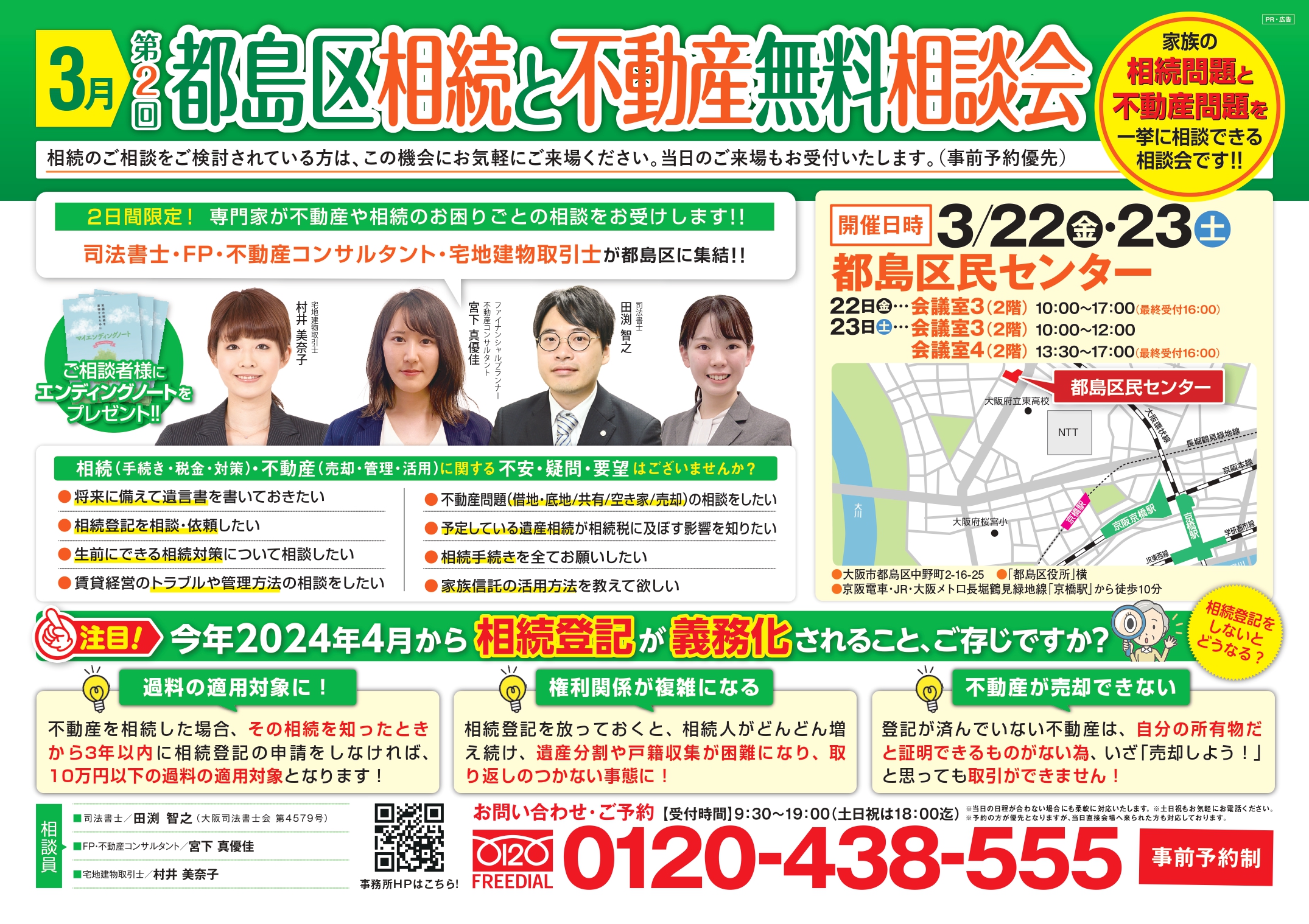 チラシ 3月_都島区相談会_page-0001田渕司法書士・行政書士事務所。