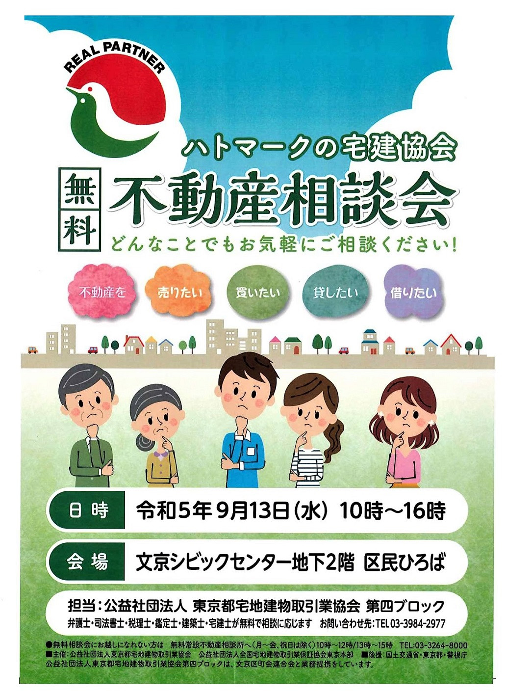 不動産相談会』2023年9月13日 水 東京都宅地建物取引業協会主催の無料不動産相談会開催!多くの方のご来場がありました。不動産ブログ。