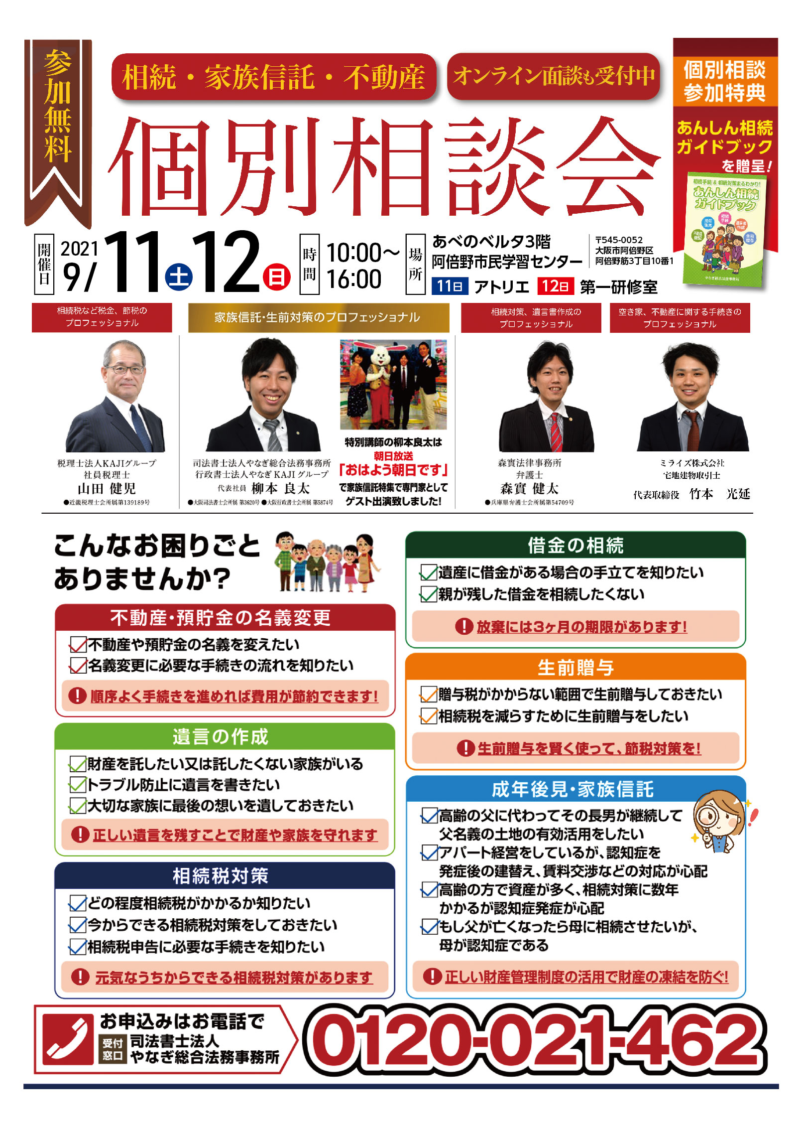 9月17日 土 「無料お悩みパーフェクト相談会」開催のお知らせ – 兵庫県司法書士会。