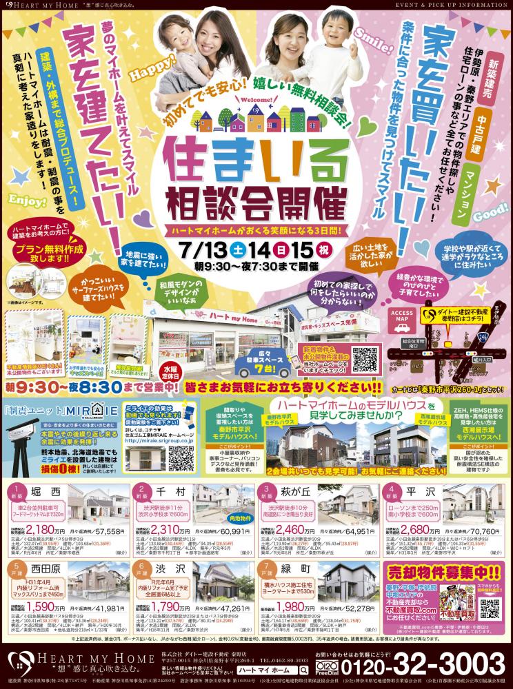 ハートマイホームで学ぶ2日間!住まいの無料相談会!のWEBチラシ情報小田原 不動産 ハートマイホーム ダイトー建設不動産。