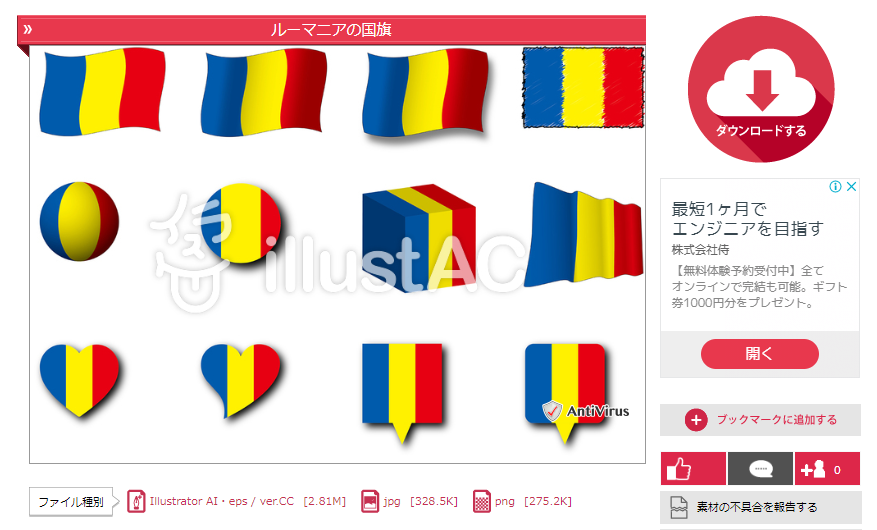 ルーマニアの国旗イラストフリー素材無料フリーイラスト素材集 Frame illust。