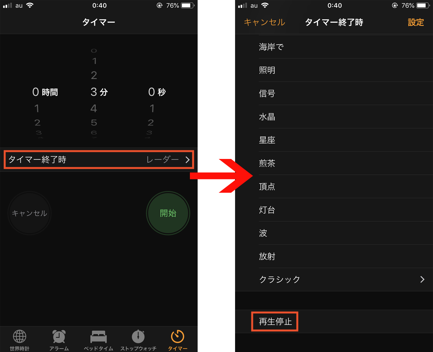 iPhoneのタイマー機能で再生中の曲・動画を自動停止する方法。視聴しながら寝落ちしても大丈夫!できるネット。