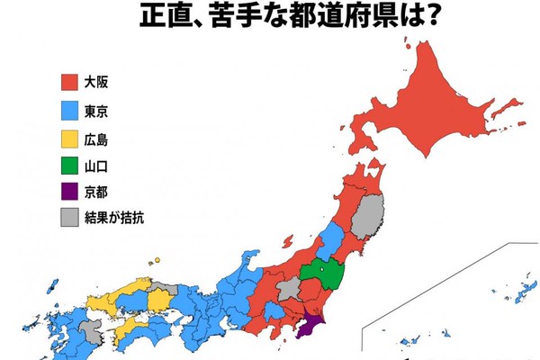 東西でここまで違うとは「苦手な都道府県といえば?」地域別マップが興味深い 全文表示 Jタウンネット。