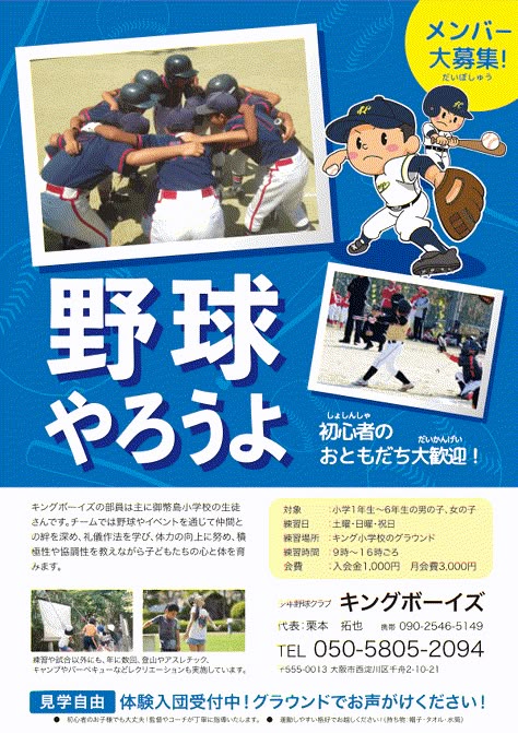 少年野球の体験会 部員募集のチラシ制作の方法 無料テンプレートあり少年野球情報・監督インタビュ。