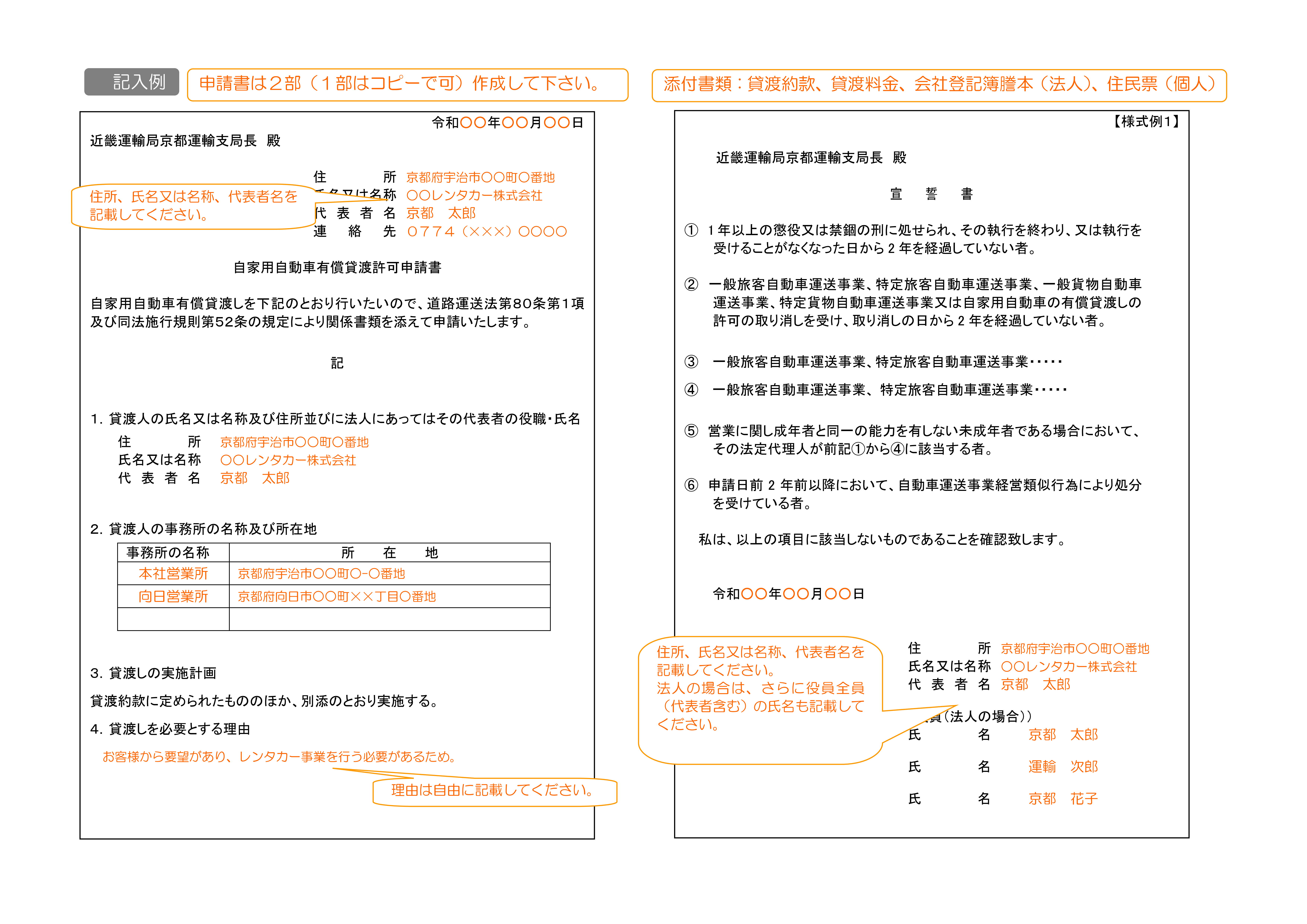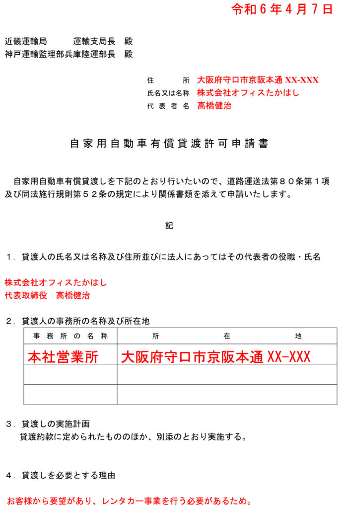 自家用自動車有償貸渡許可申請 レンタカー事業許可申請。