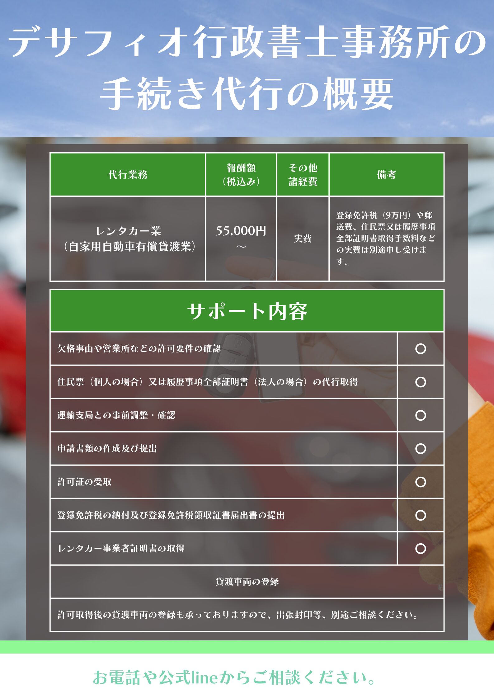 レンタカー業 自家用自動車有償貸渡業 許可は行政書士にお任せ - 大分デサフィオ行政書士事務所。