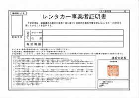 レンタカー事業者証明書。