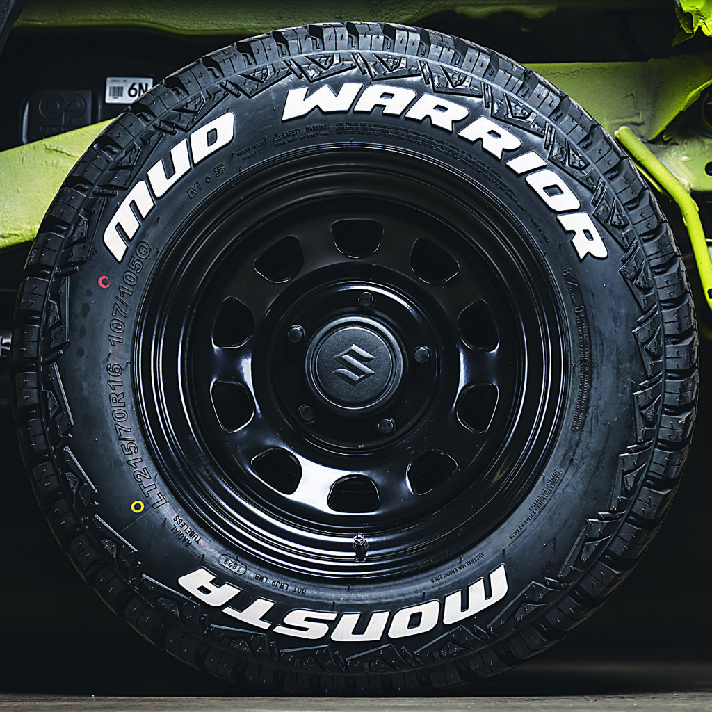 ジムニーシエラ向け。ワイドで深くてかっこいい鉄チンホイールが登場!ジムニーカスタマイズ。
