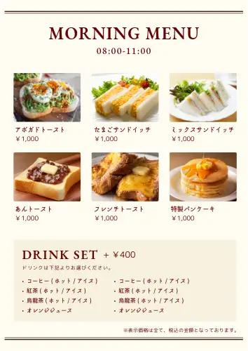 メニュー表作成の無料テンプレート・デザインサンプル - ネット印刷グラフィック。