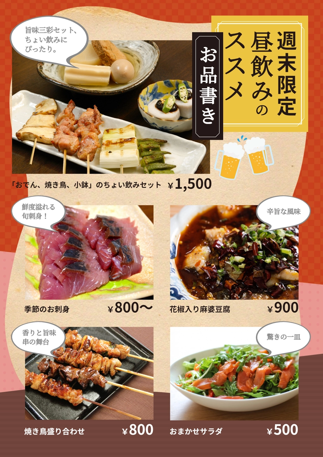 居酒屋_メニュー表チラシ・フライヤーの無料デザインテンプレート - ネット印刷グラフィック。