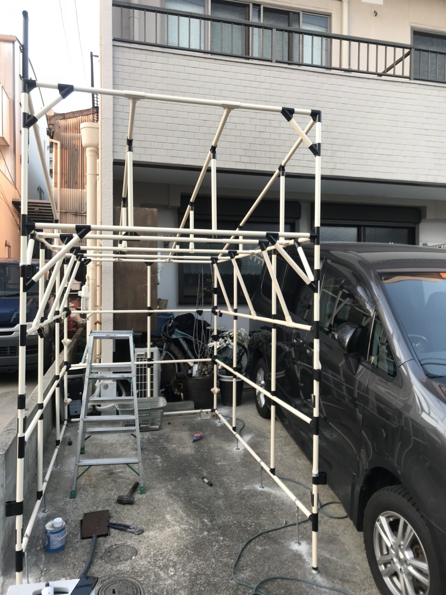 DIY 素人がバイクガレージを建てるよ #6 強風の中、一人で組み立て。