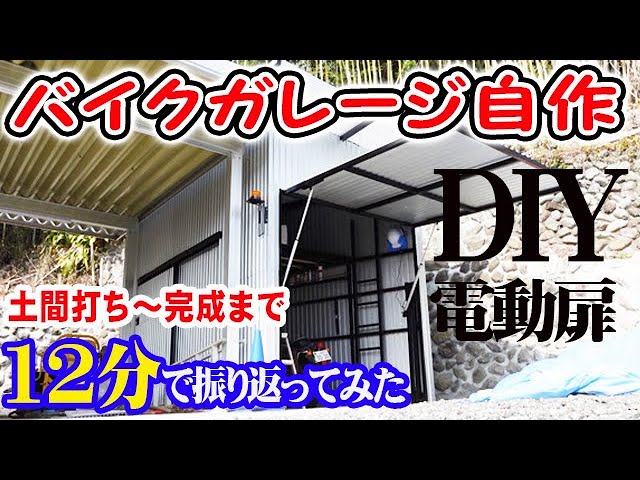 バイクガレージを自作 土間打ち~バイクガレージ作成までを12分の動画で振り返る!! DIY 自作バイクガレージ 溶接 電動シャッター 倉庫ほーじょーパパ。