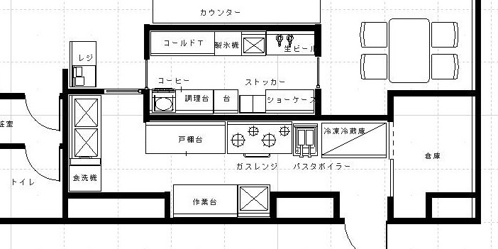 喫茶店の厨房レイアウトと設備飲食店開業・厨房機器の販売・修理・買取の近畿厨房。
