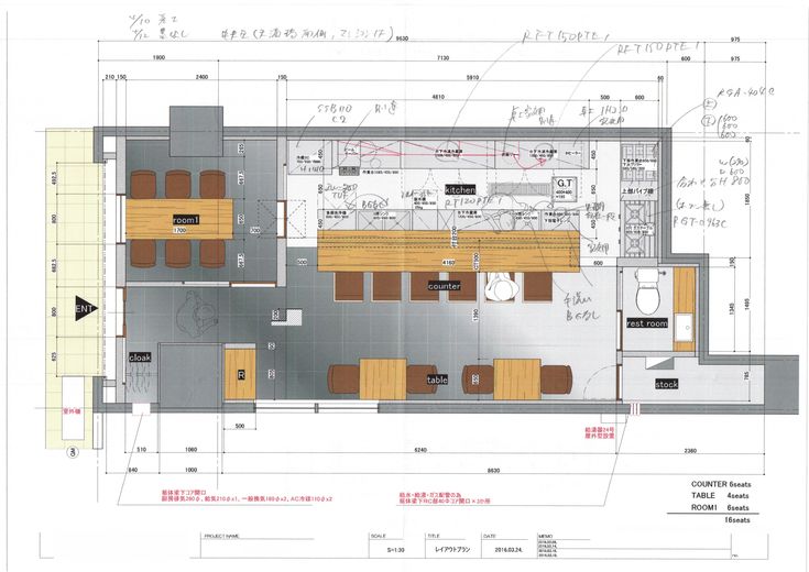 カフェ店舗設計デザインとレイアウト図面飲食店の内装工事と厨房機器。