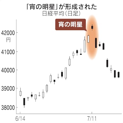 日経平均439円安 チャートに天井サイン「宵の明星」点灯 - 日本経済新聞。