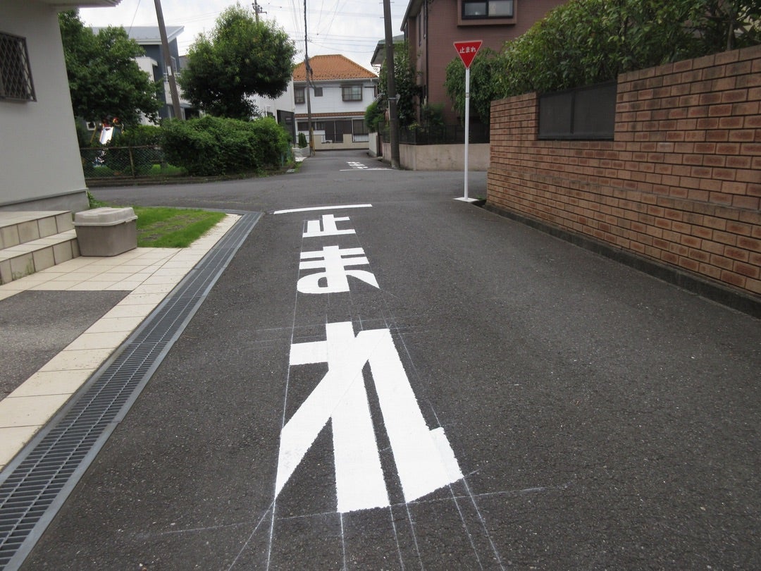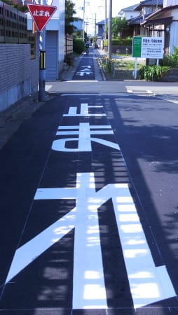 止まれの路面標示と止まれの標識設置馬場けんじブログ。