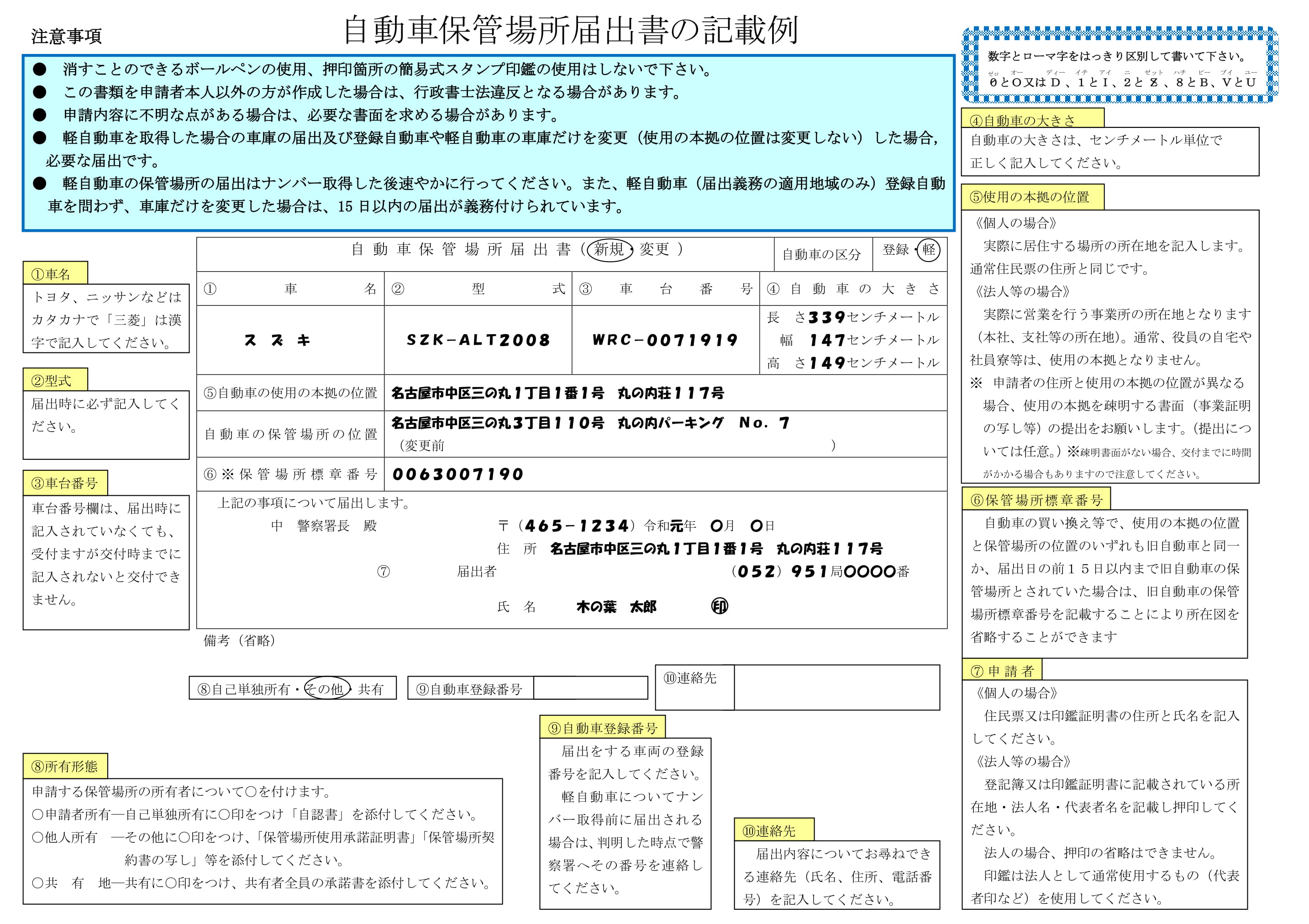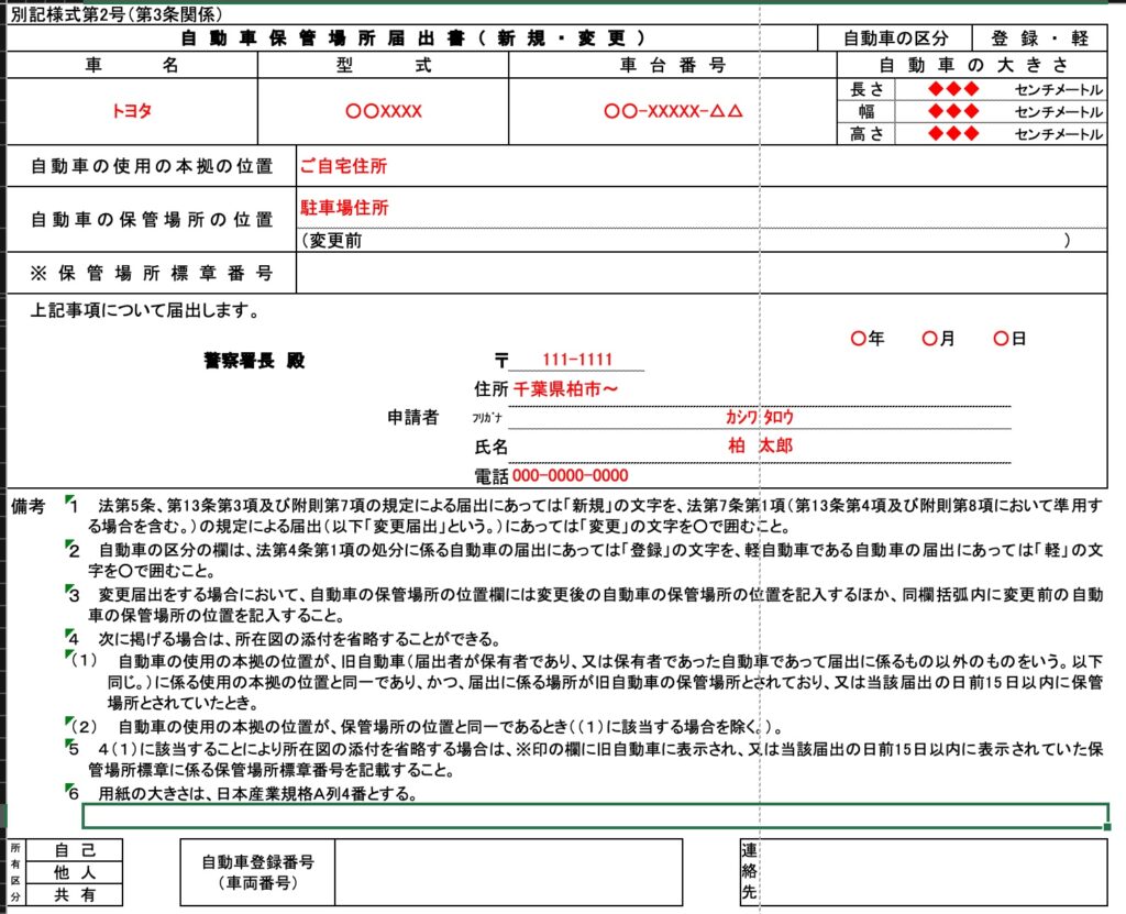 軽自動車の自動車保管場所届出書の書き方・記入例新規届出車庫証明代行ショップ青森。