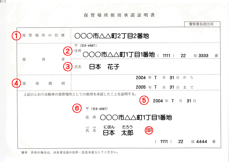 車庫証明の申請書の書き方 詳細解説小池行政書士事務所。
