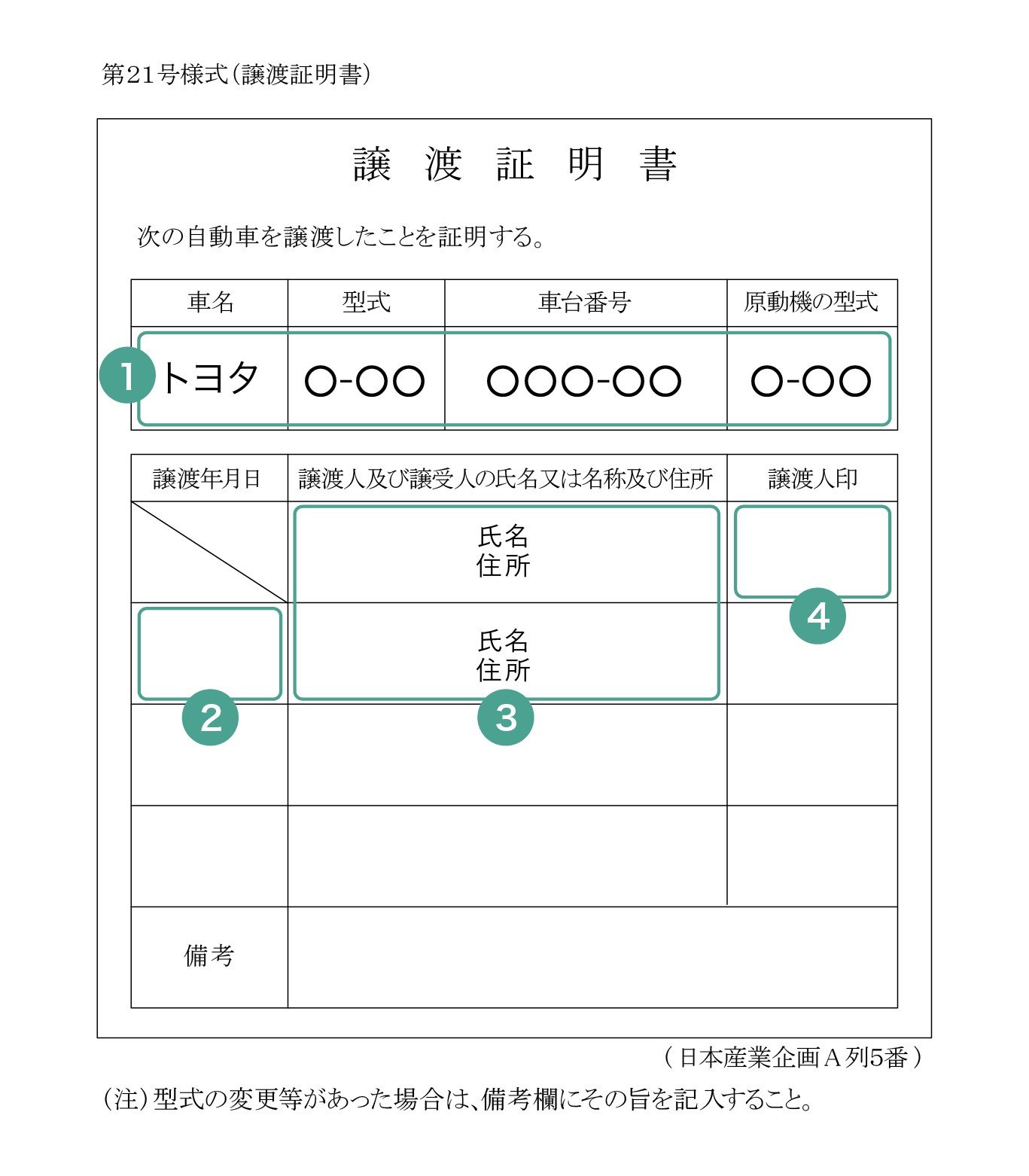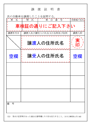 譲渡証明書の書き方神戸・大阪 名義変更 代行センタ。