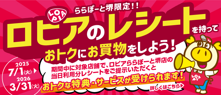 ロピアのレシートを持っておトクにお買物をしよう!キャンペーン開催!ららぽーと堺。