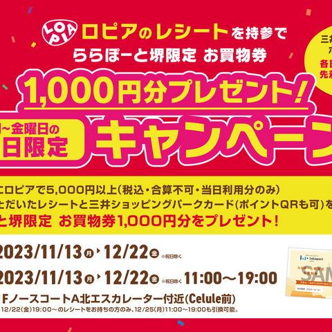 ≪ららぽーと和泉・堺限定≫ロピアdeトクするキャンペーンららぽーと堺。