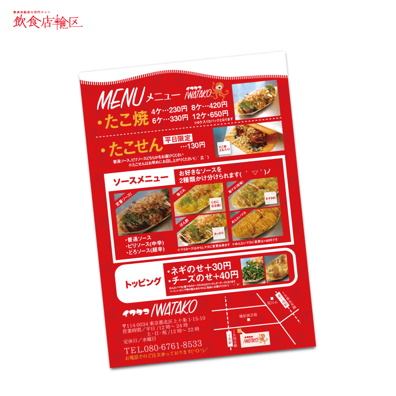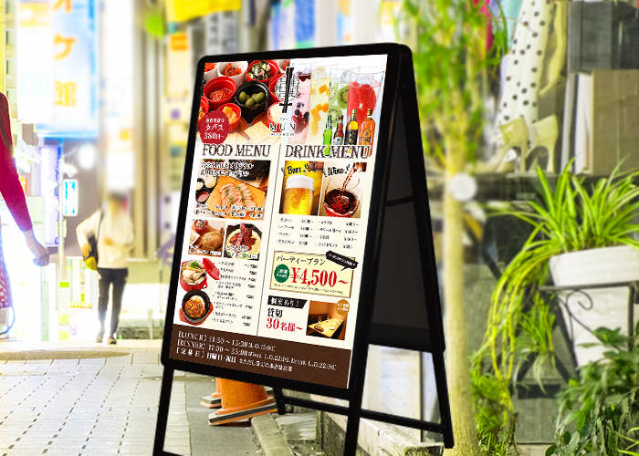 店舗前メニュー看板飲食店のチラシデザイン作成・印刷なら飲食チラシ制作.com。