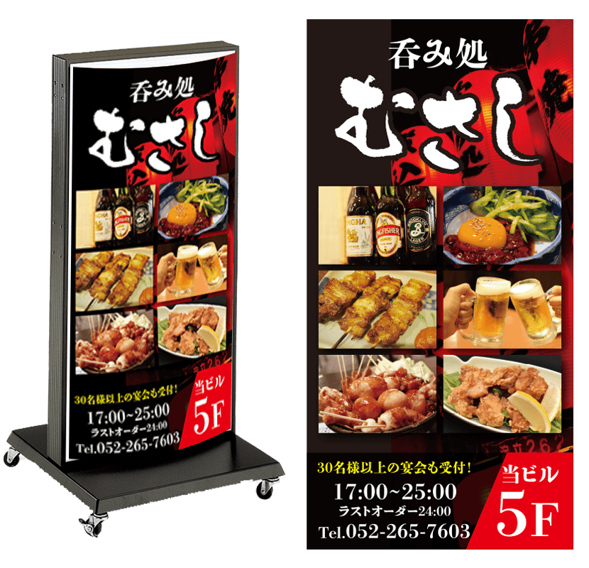 居酒屋店 メニュー表が看板にもなる、一石二鳥のデザイン。