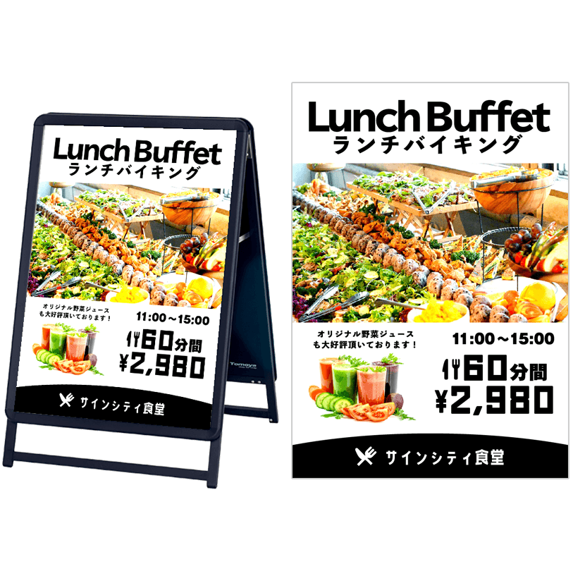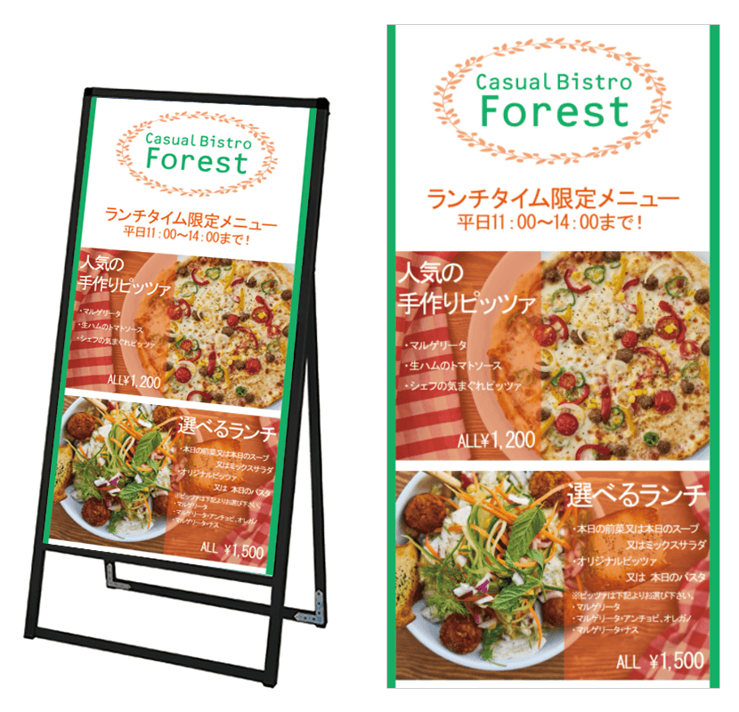 飲食店のランチのPRにオススメのカードケースA型看板のご紹介 - 看板通販・製作のサインモール。