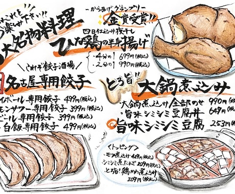 飲食店向け手書きメニューで世界観をデザインします飲食店 温かみある手書きメニュー筆文字&イラストで魅せるココナラ。