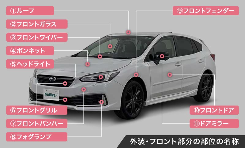 車の部位 パーツ 名称一覧!外装・内装を図解で分かりやすく解説 - クルマのわからないことぜんぶ車初心者のための基礎知識norico ノリコ。