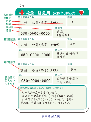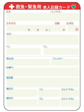 緊急時連絡カード 無料ダウンロードしてご活用くださいいが☆グリオ。