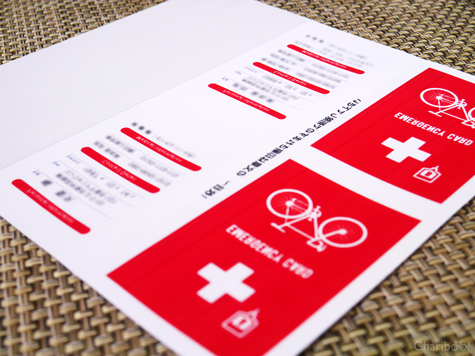 エマージェンシーカード 緊急連絡先カード ・自転車用Cardinal Online Shop。