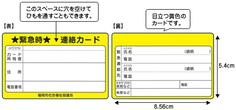 緊急時の安心安全 安心情報キット・緊急時連絡カード。