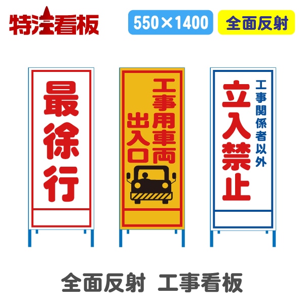 全55種類社名入れ工事用看板 全面反射 安全看板 工事標示板 立て看板 注意看板 案内 案内板 予告板 道路工事 看板 標識 建設 自立標識板 鉄板 鉄看板 鉄枠 建設工事 工事 道路工事看板550×1400反射自立式鉄枠付き。