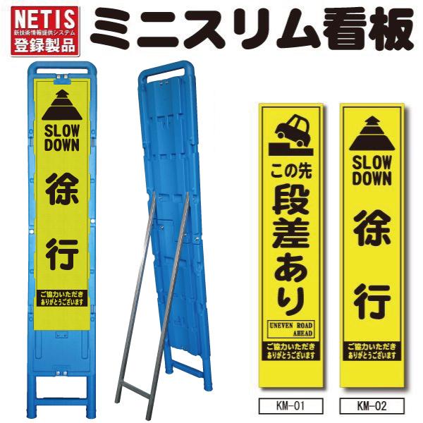 ミニスリム看板 ブロー製枠付き NETIS 蛍光プリズム高輝度反射 工事用看板 差込式 取替可能 電柱取付 自立式 335×1725mm※送料お見積もり・代引不可。
