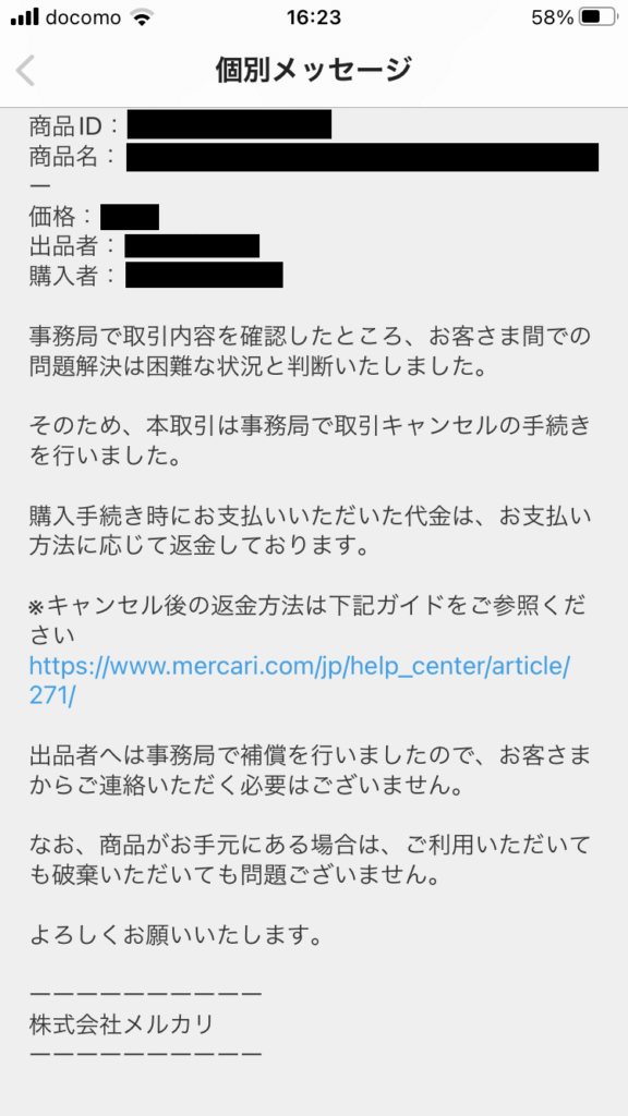 メルカリで説明と違う状態の商品が届いて、運営に返金してもらった話。