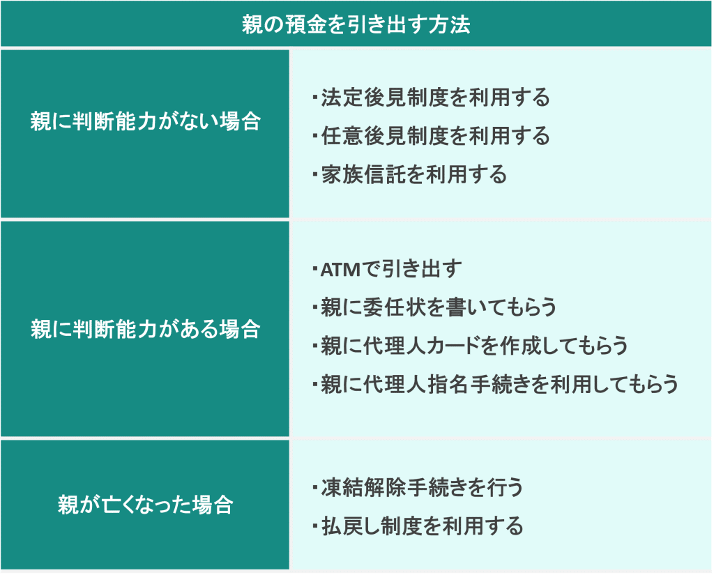 親の預金を引き出したい!親の状態別の引き出し方とトラブル回避方法。