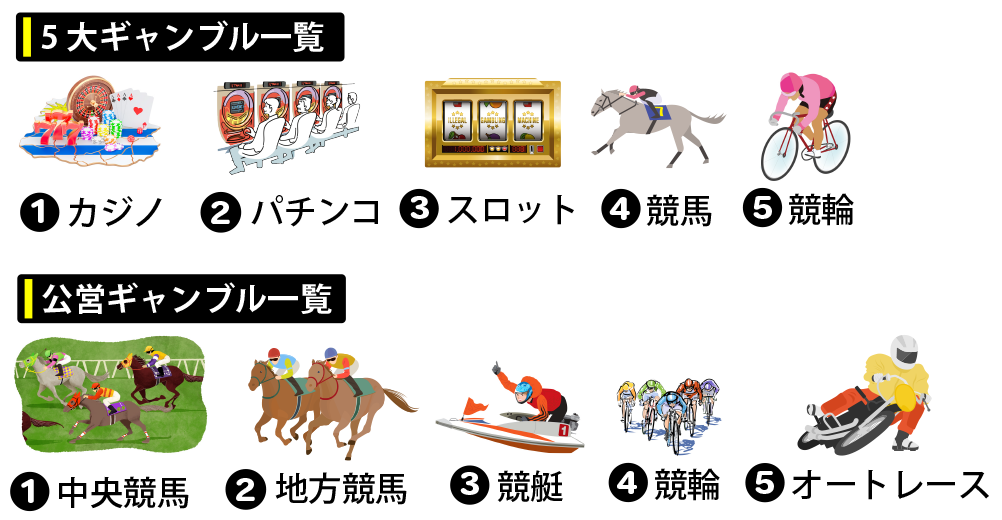 ギャンブル・賭け事の種類一覧表を初心者向けまとめTrust Plus。