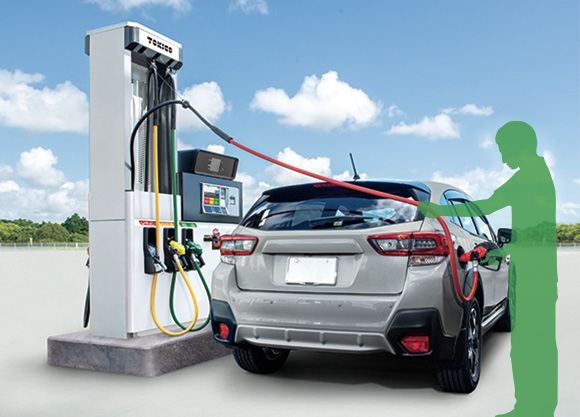 ガソリン計量機メーカー最大手 タツノのEV事業に注目!充電器の性能や利用方法もご紹介します。