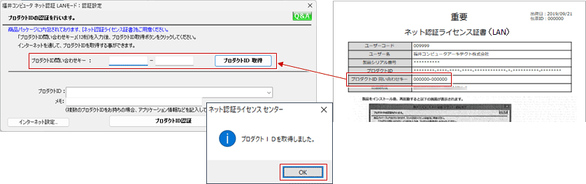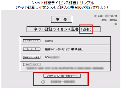 Q:ネット認証ライセンスを設定する際に入力する「プロダクトID 問い合わせキー」は、どこで確認できますか。