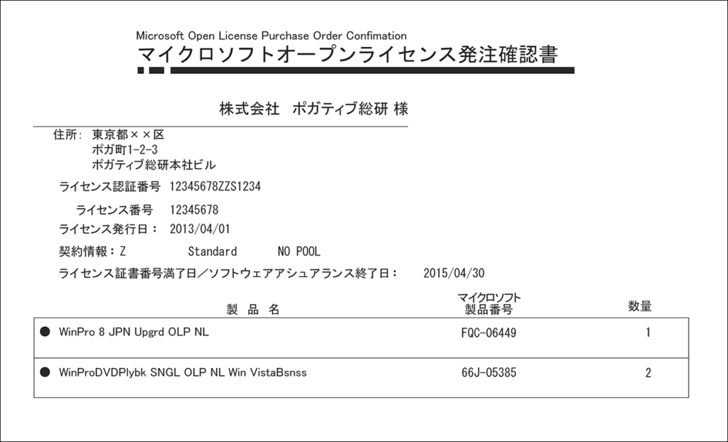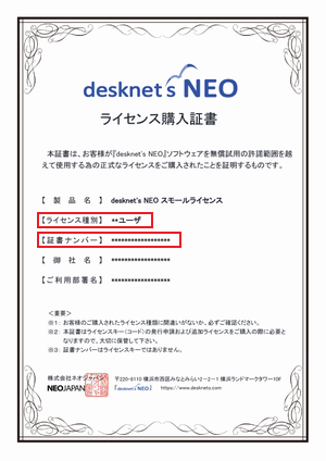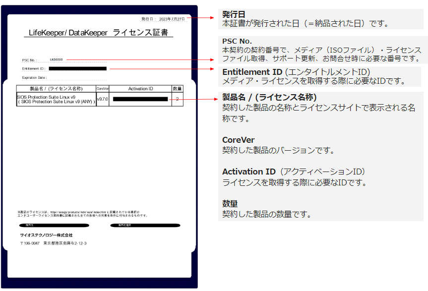 ライセンス証書記載の期間に関する説明事項 法人向け製品。