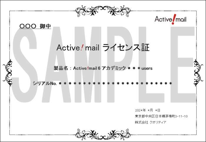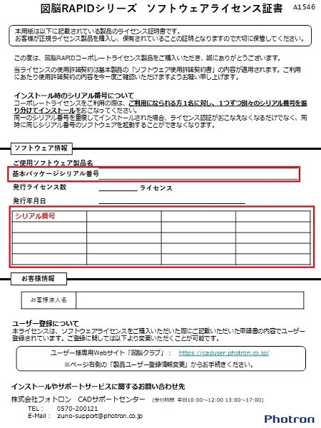 ライセンス認証について株式会社C&Cアソシエイツ。