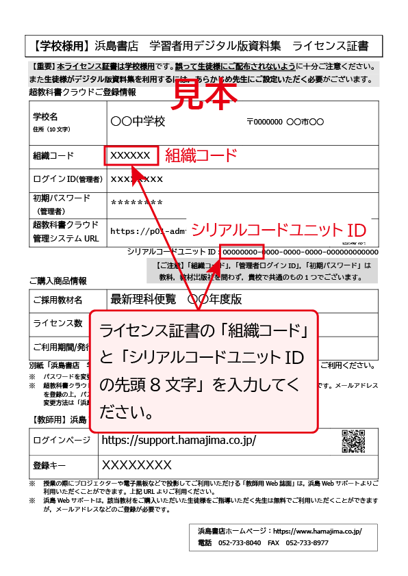 学習者用デジタル版資料集 超教科書クラウドシリアルコード通知シート浜島書店。
