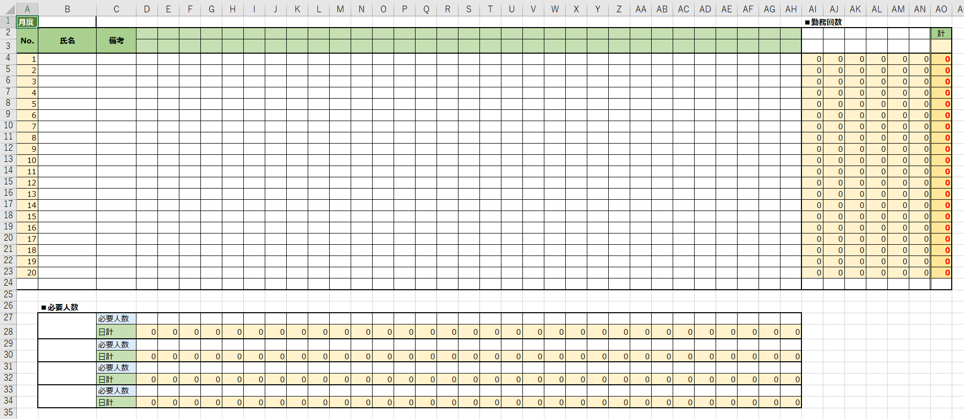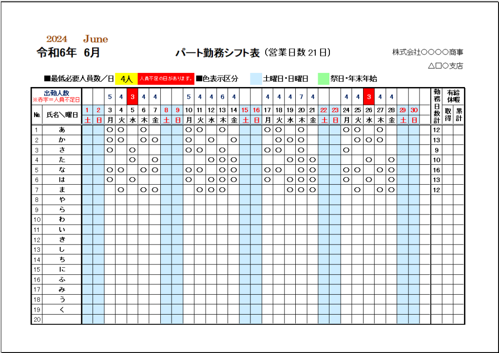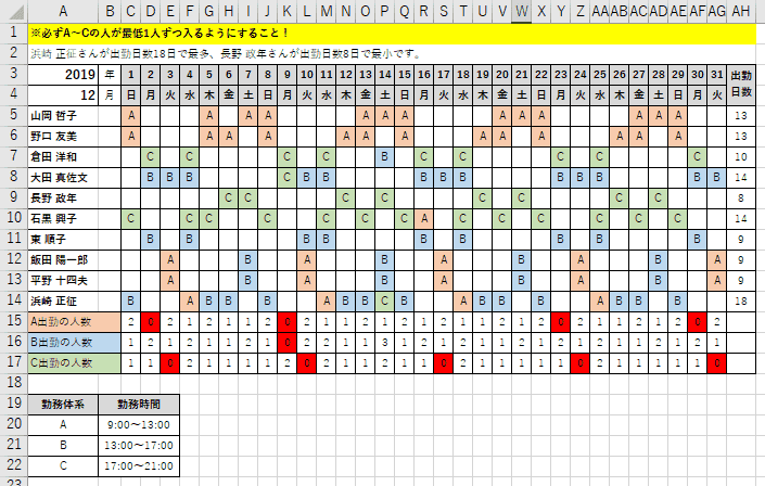 シフト管理表月別・日別- 無料テンプレート公開中 - 楽しもう Office。